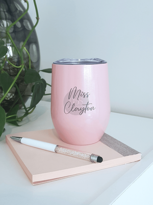 Design / Text is adhered to one side of vessel in permanent vinyl, with a choice of various text colours - Black / Rose Gold / Gold / Silver / Charcoal